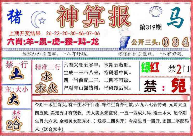 | 322期:内幕一肖 | 322期:四肖八码 | 322期:彩民三码 |